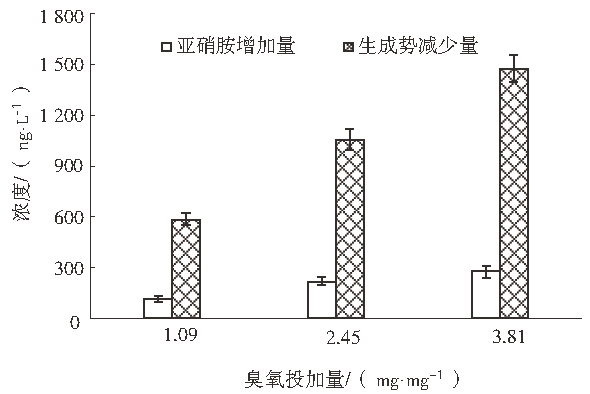 2.2 臭氧投加量對亞硝胺濃度的影響